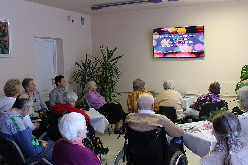 Tradycją naszego Domu jest organizowane od kilkunastu lat w okresie świąteczno-noworocznym wspólne kolędowanie mieszkańców, pracowników i przyjaciół DPS-u. W tym roku tradycję połączyliśmy z nowoczesnością - najpiękniejsze polskie kolędy i pastorałki zaśpiewaliśmy w formie karaoke :-) To był wyjątkowy koncert, pełen pięknych tekstów, melodii, dobrej zabawy, uśmiechów, uścisków dłoni, nierzadko też skrywanych łez wzruszenia i wspomnień o najbliższych, których brak już przy naszym świątecznym stole...